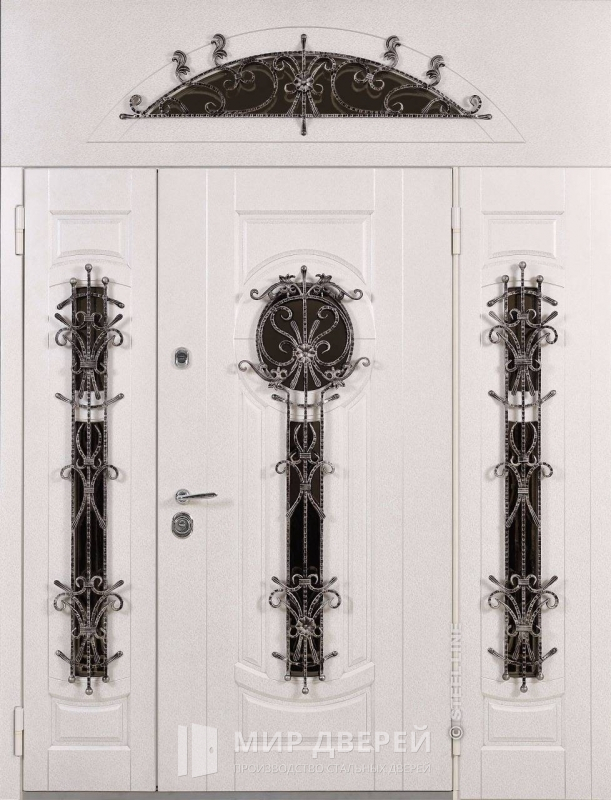 Входная дверь с фрамугой в частный дом №20 представляет собой идеальное сочетание стиля, надежности и функциональности, обеспечивая высокую степень защиты и комфорт для вашего дома.