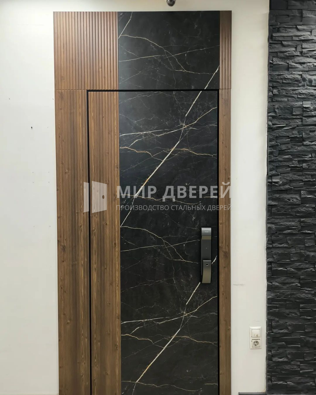 Поставил железную дверь с отделкой под шпон, теперь квартира выглядит стильно и защищена на 100%.